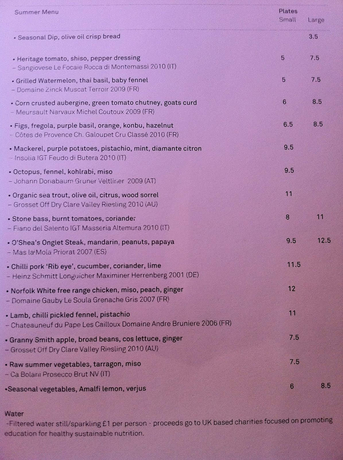 One little point: as I recall, the cheapest 125ml glass of wine on the list is actually a pretty reasonable £4.10.