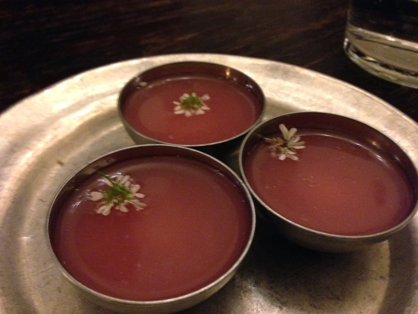 Another amuse, little metal bowls of sea bass ceviche, impressed as well, the mixture not too bitter or too sweet, and (although you can't see them from the photo) with plenty of chunky fish.
