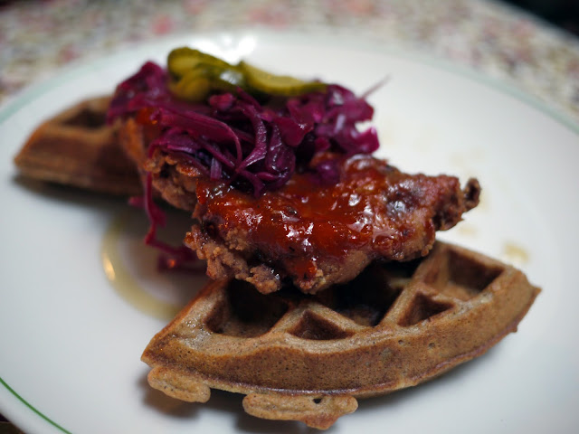 Worried by the potential size of the £58 main course we had our eyes on (more on that later) we decided to share a starter of what we'd been led to believe was a Red Rooster classic - fried chicken and waffles. What arrived was a small, butterflied thigh piece, topped with chilli sauce and pickle, on top of maple waffle. The chicken itself wasn't bad, just boring - watery and plain and desperately needing more spice and seasoning. The waffle was cold and chewy but otherwise OK with a nice maltiness, and the chilli - sorry, Rooster - sauce was best described as "wet". Pickle was bizarrely good, though, so there is that.